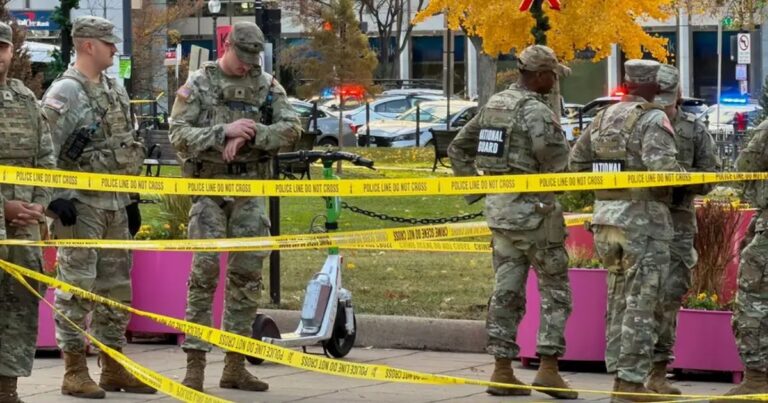 நேற்று புதன்கிழமை வாஷிங்டன் டிசியில் உள்ள வெள்ளை மாளிகை அருகே இரண்டு தேசிய காவல்படை வீரர்கள்…